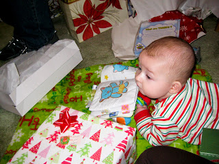 Then Christmas morning dawned sniffly...and only got worse. By Christmas night Frazier was just plain sick. The sickest he's ever been- coughing, sneezing, runny nose, congestion. Up all night. We finally got him to sleep about 4 in the morning by driving him down Hwy 167 and let him sleep the next couple of hours in his carseat in the bedroom. He's been sick ever since, but he is better every day. And really, Frazier's a pretty pleasant baby even sick.